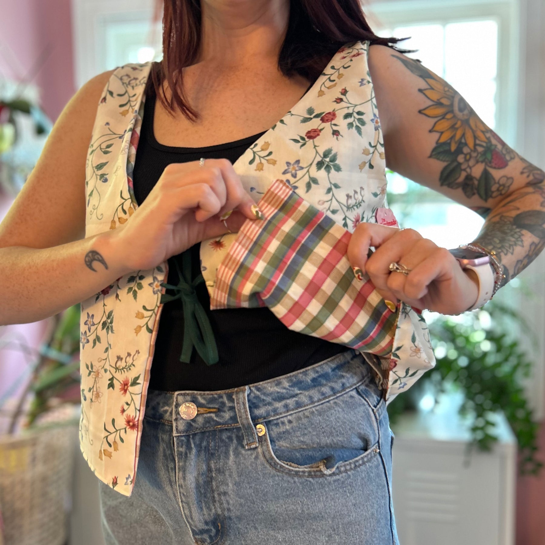 This item is handmade from a vintage bedsheet, carefully selected for their patterns & uniqueness. Each piece is one of a kind, sustainable and eco-conscious.