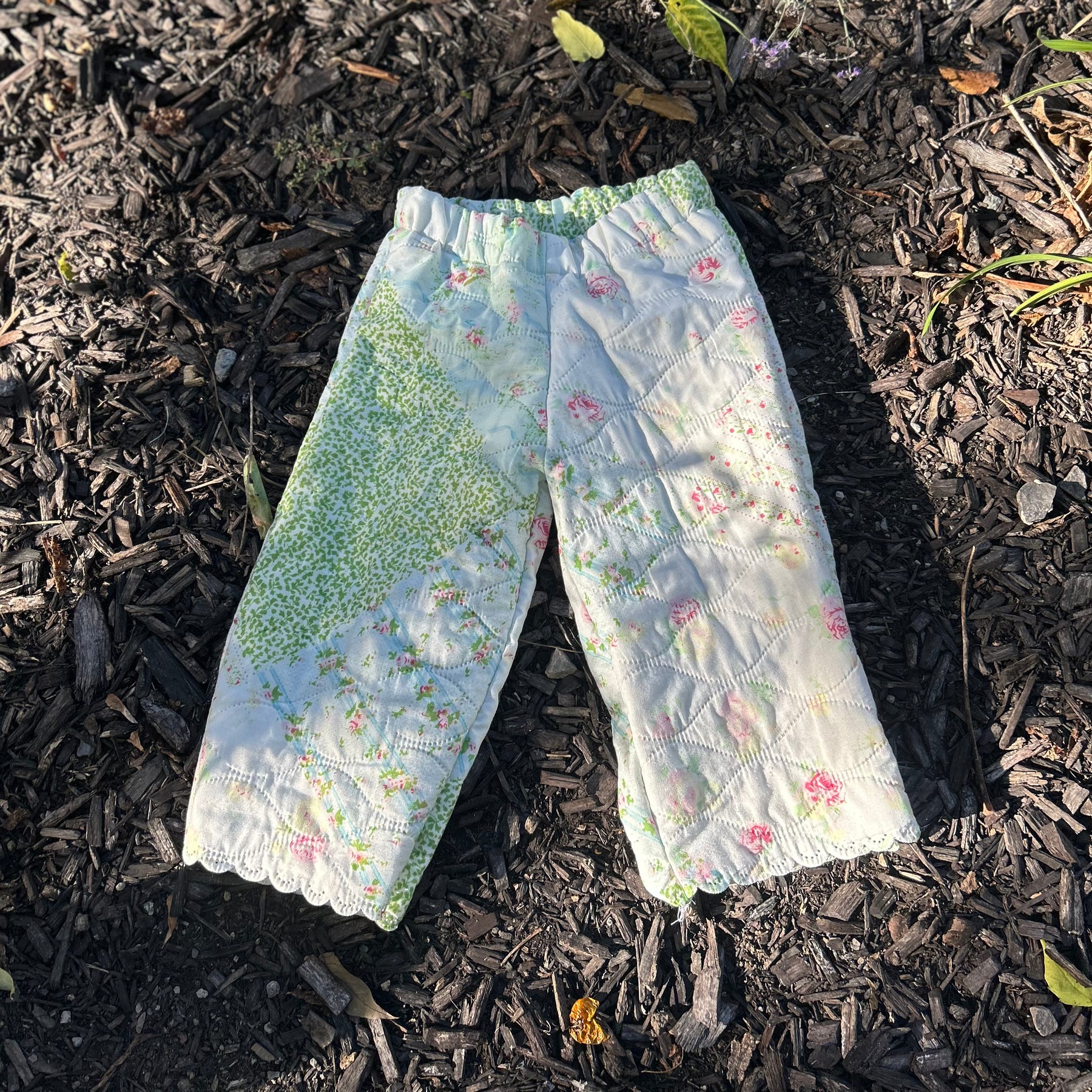 Our play pants are here! Our kids pants are stretchy, comfy and easy to breath perfect for summer or fall! Made from vintage, thrifted or scrap fabrics they are sustainably made by hand here in our studio!