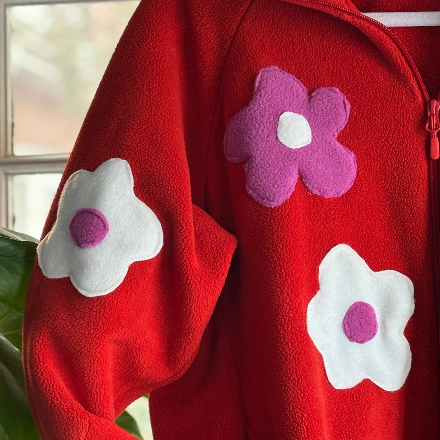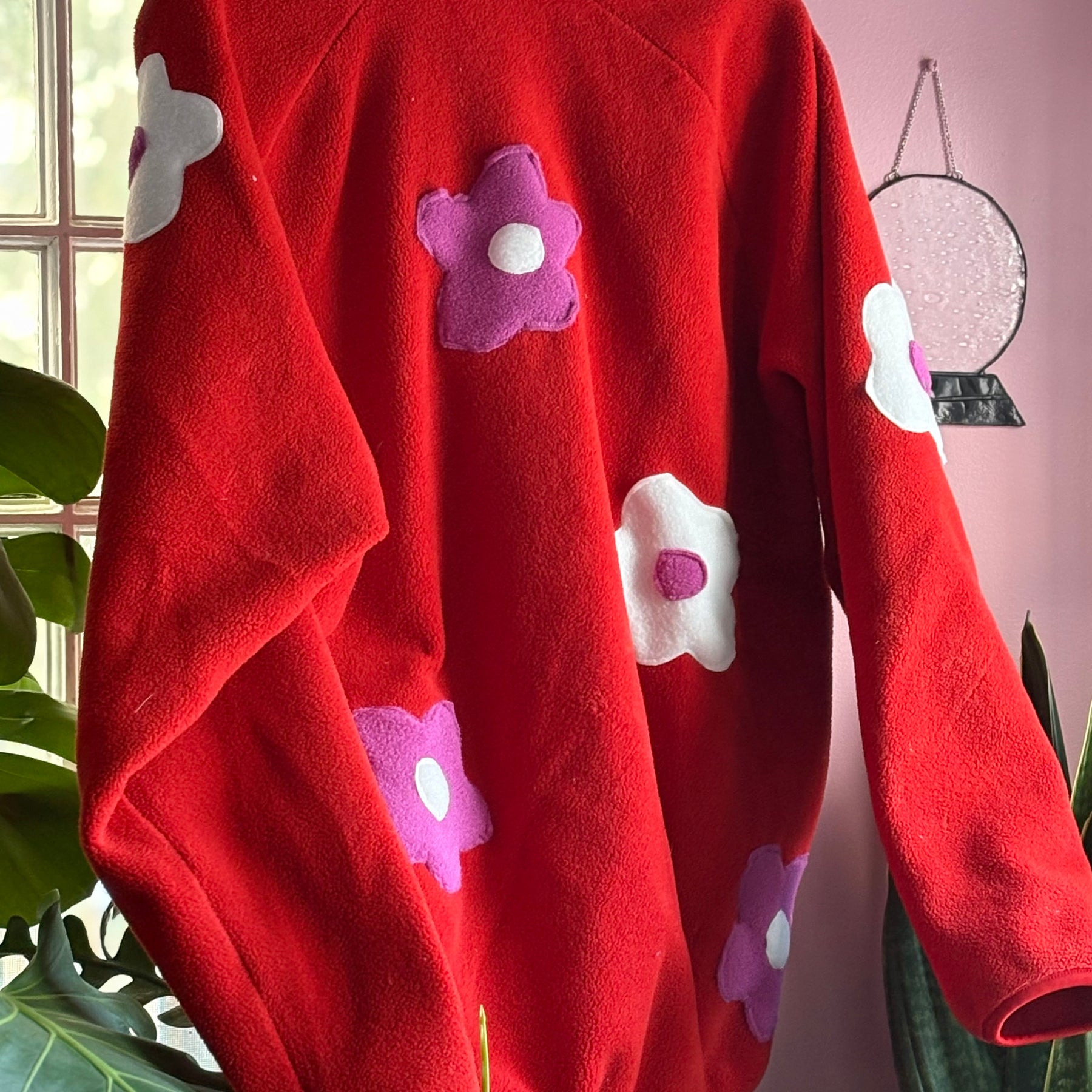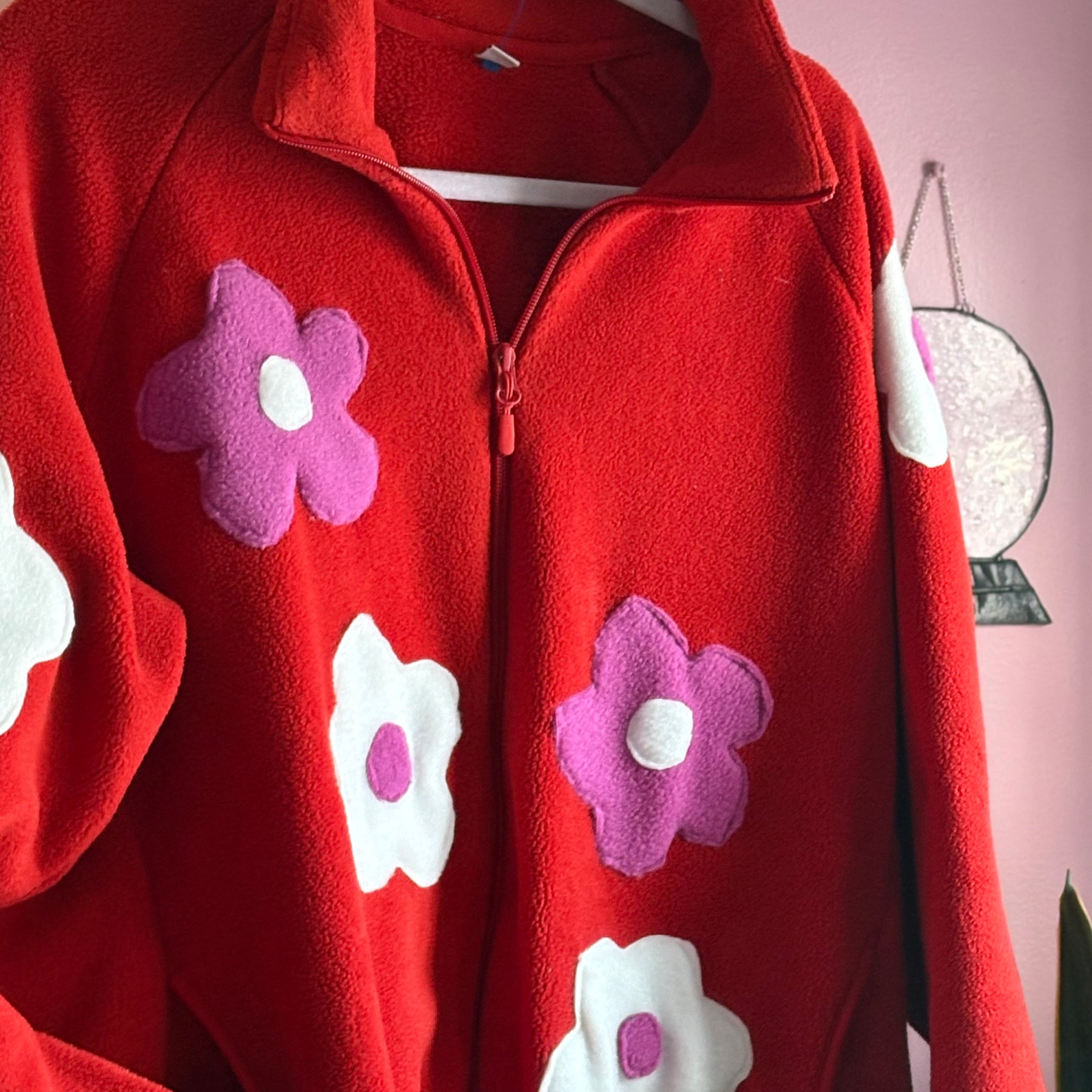 This is a red mountain warehouse fleece zip in size L With fleece flowers we added